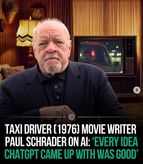 Most of you might have run across a post that circulated widely on social media about Paul Schrader, and his concerns about how ChatGPT was going to dethrone the work of the professional writer and take over coming up with original ideas.